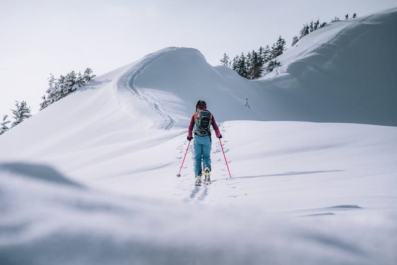 Skitourengehen hier heißt: Schritt für Schritt bergauf, der Sonne entgegen – und dem Alltag davon
